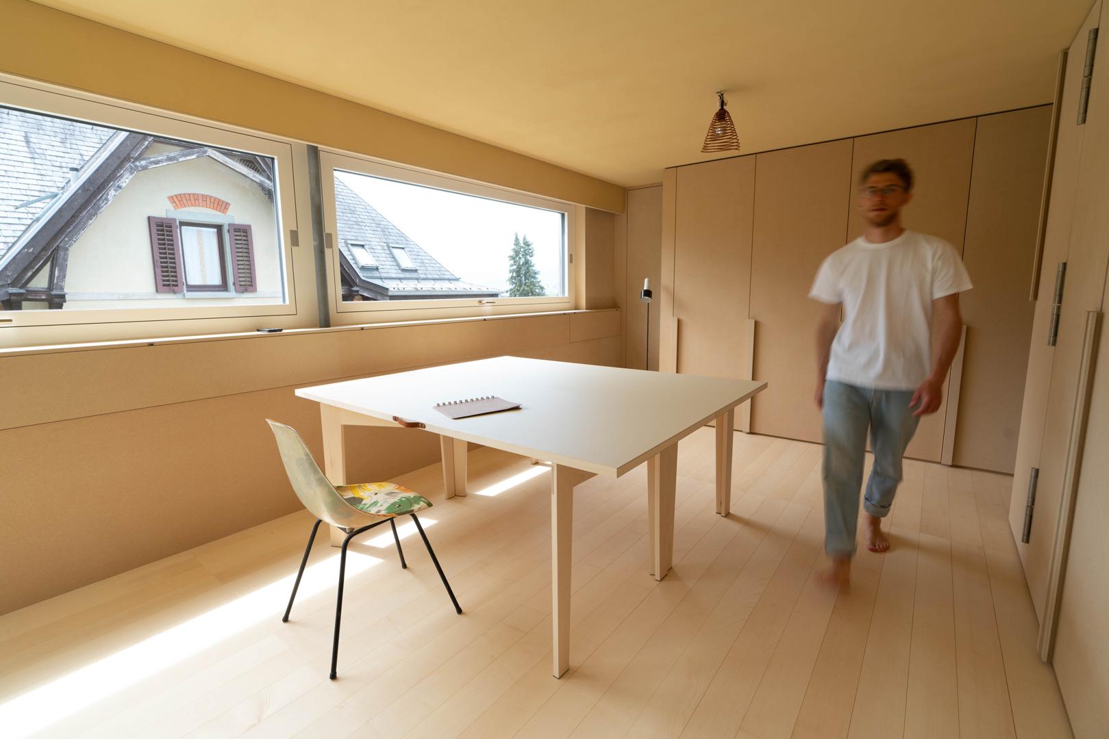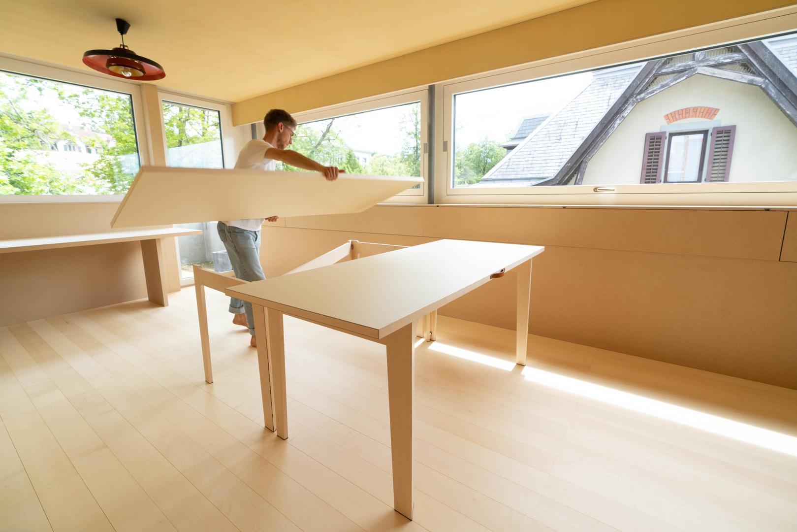 "ZAM" ist optimiert für moderne Wohnungen mit wenig Platz. Zusammengefaltet sind Platte und Gestell gemeinsam nur 9cm dick.